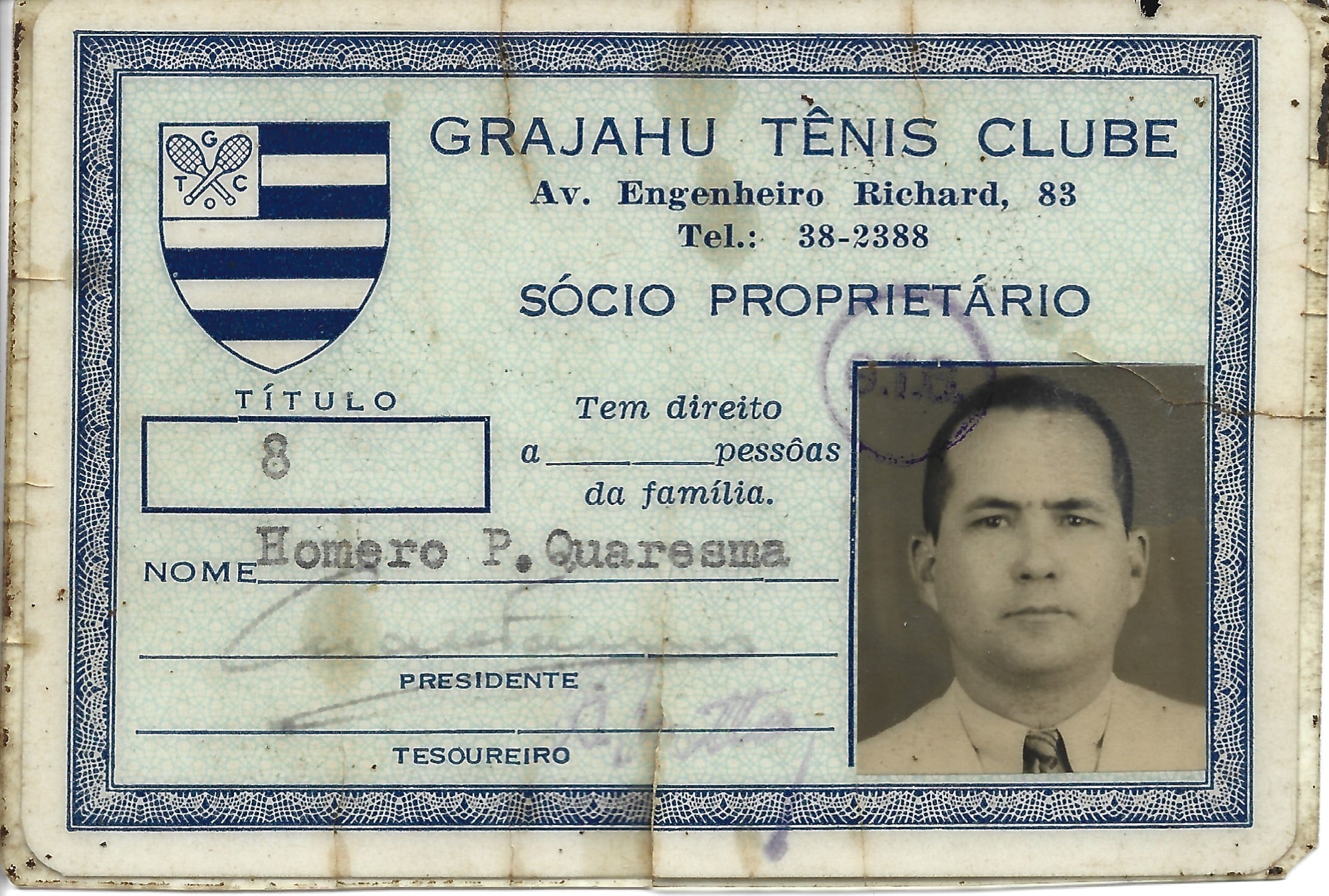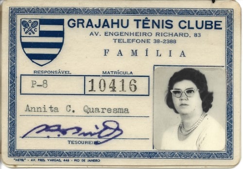 Carteirinhas de sócios do Grajaú Tênis Clube, de Annita e Homero.