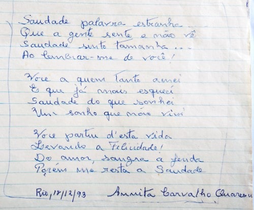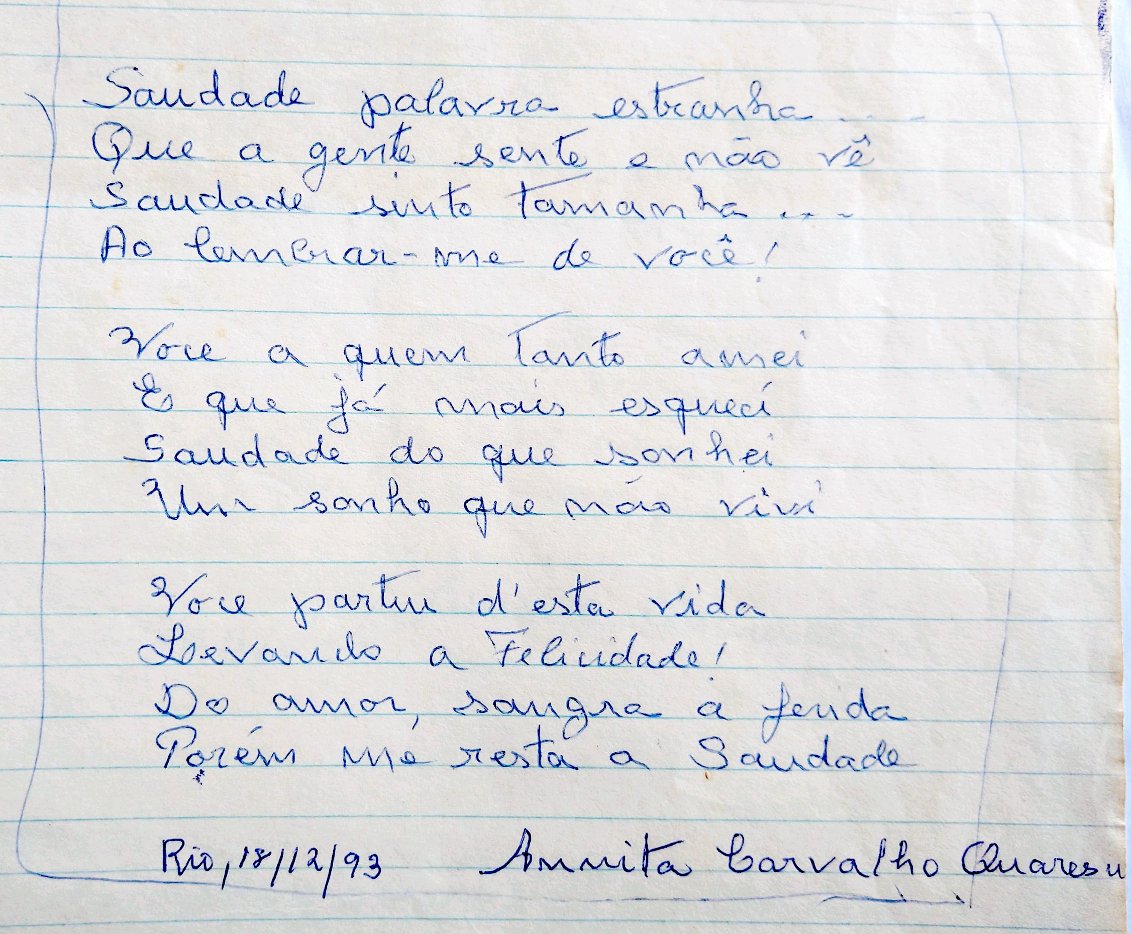Poema escrito por Annita em 18 de dezembro de 1993.